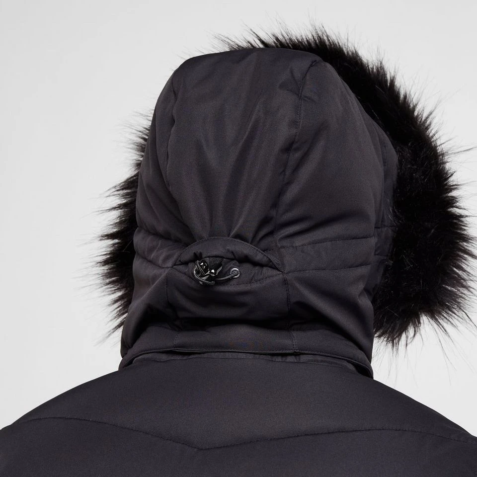 - Detachable, adjustable hood with detachable faux fur trim