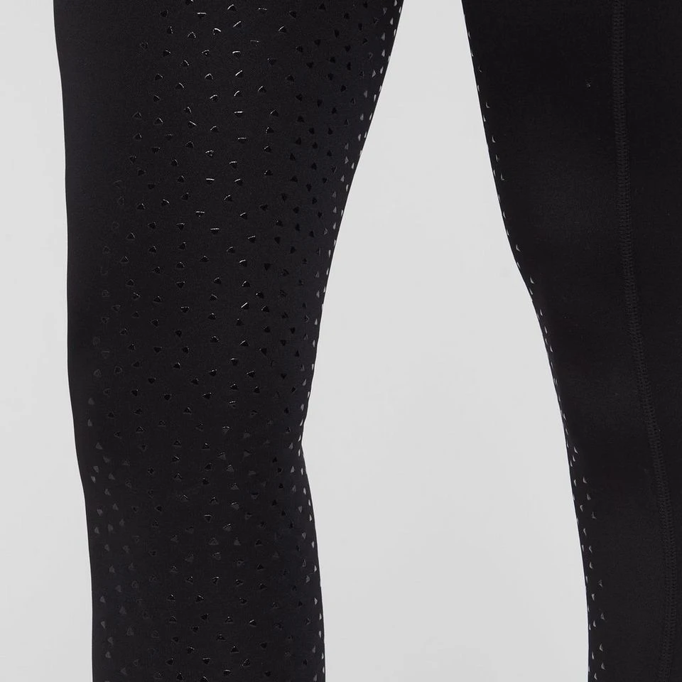 A pair of stretchy thermal riding tights designed for horse riding in colder temperatures.