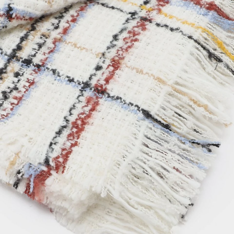 A stunning accessory scarf woven in boucle fabric yarn style,